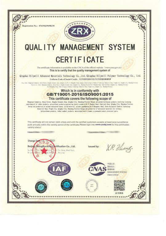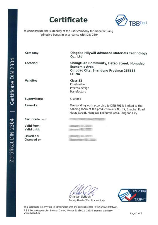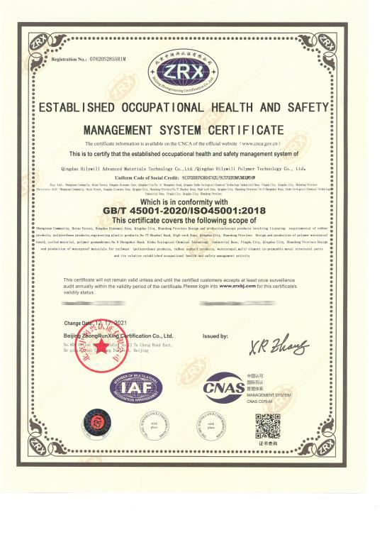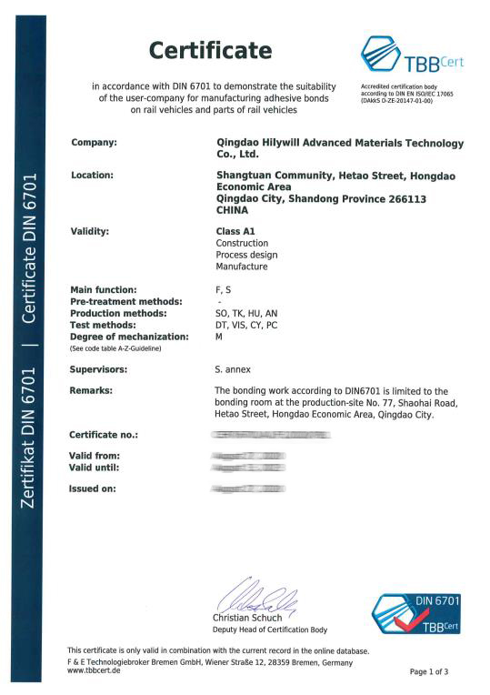 公司通過了質量管理體系ISO9001、國際汽車行業標準IATF16949、國際鐵路行業標準ISO/TS22163、德國粘接標準DIN6701、中國鐵路CRCC產品認證、環境管理體系ISO14001、職業健康安全管理體系ISO45001等多項體系認證。